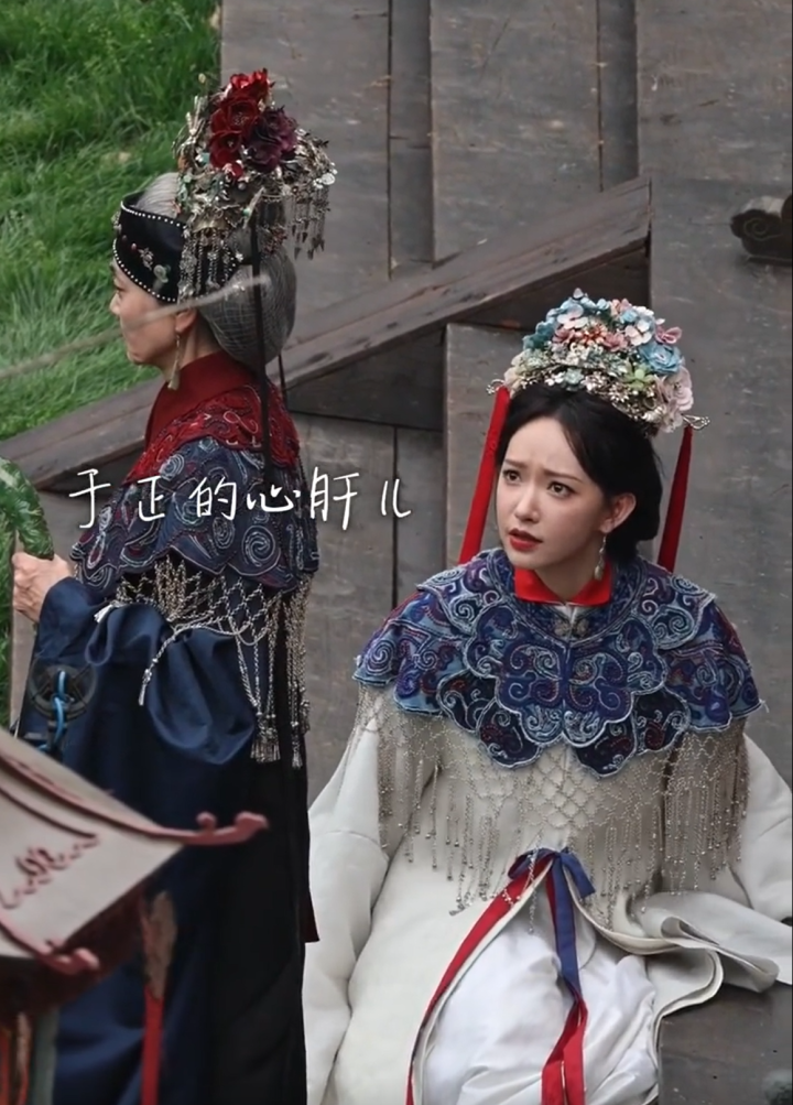 男性角色多,女性角色也不少,女二程潇扮演,云肩花冠头,很古典的造型,爱豆出身的程潇一张巴掌脸,与造型适配度不低。