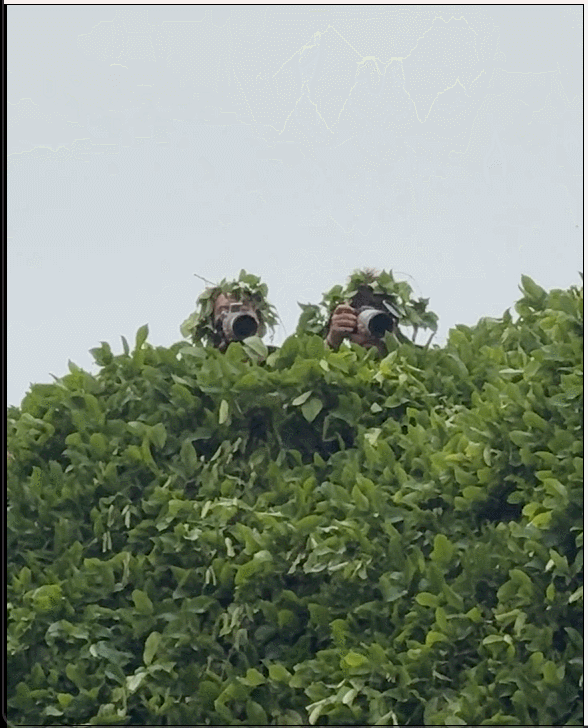 火到什么程度呢?目前该片正在紧张的拍摄工作中,代拍们为了搞到高清路透把自己伪装成树的样子,长枪短炮对准拍摄现场,里面在拍古装片,外面在演谍战片。